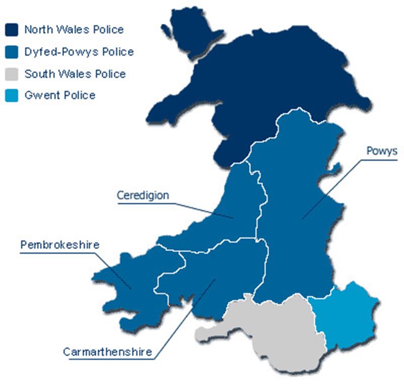The Dyfed-Powys branch of NARPO consists of a membership from the former Cardiganshire and Carmarthenshire Constabulary, Mid-Wales Constabulary and Pembrokeshire Police. The three forces amalgamated in April 1968, forming the Dyfed-Powys Constabulary and now known as Heddlu Dyfed-Powys Police - the largest police area in England and Wales.